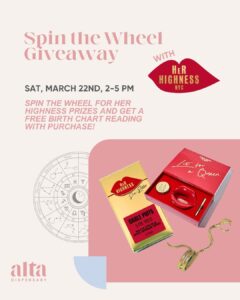 Join us on Saturday, March 22nd from 2 – 5 pm and learn about Her Highness products!